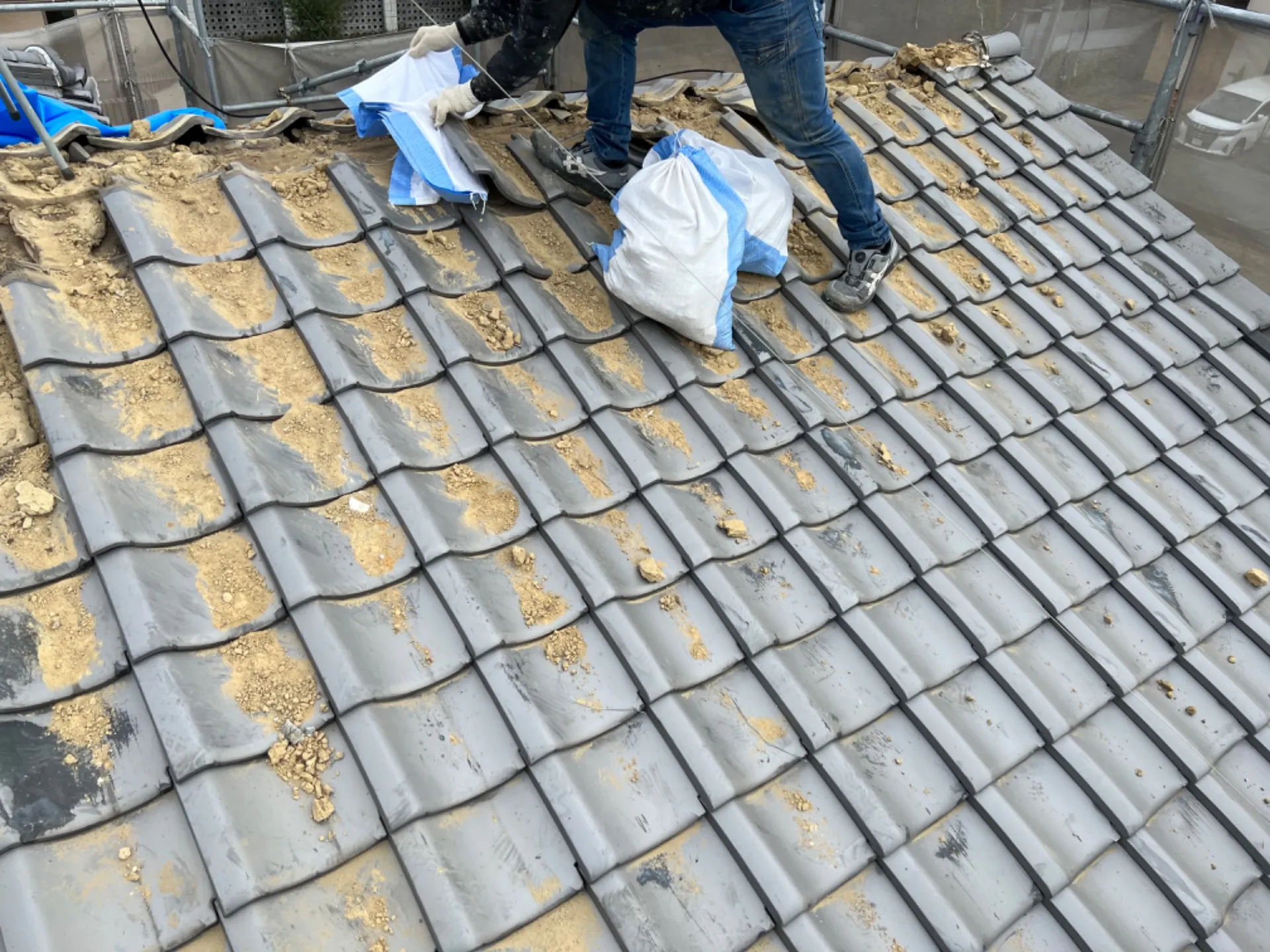 瓦からガルバリウム製の瓦に葺き替えの現場です。