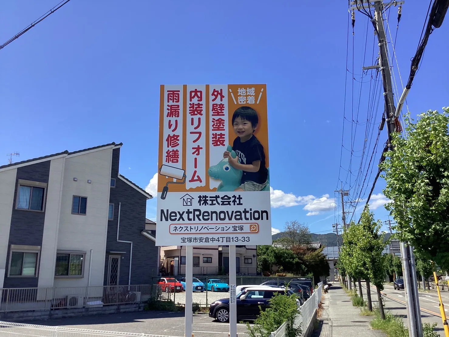 先日 宝塚市安倉中の交差点に弊社の看板が